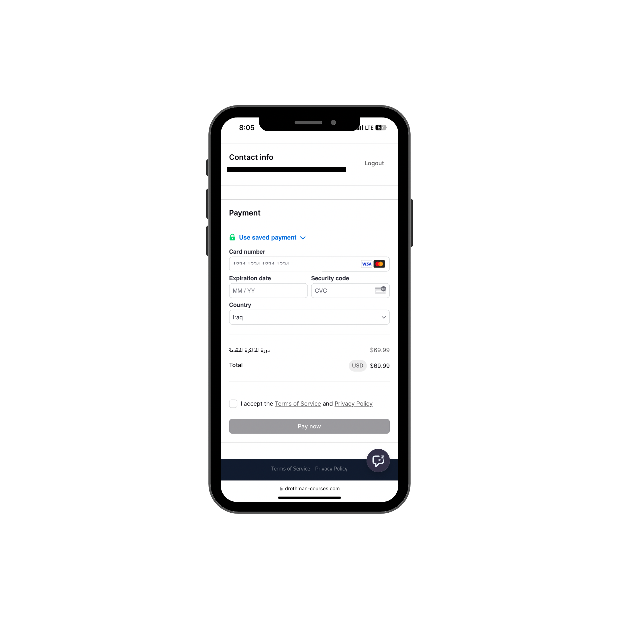 ادخل تفاصيل الماستركارد او الفيزاكارد ثم وافق على شروط التسجيل ثم اضغط